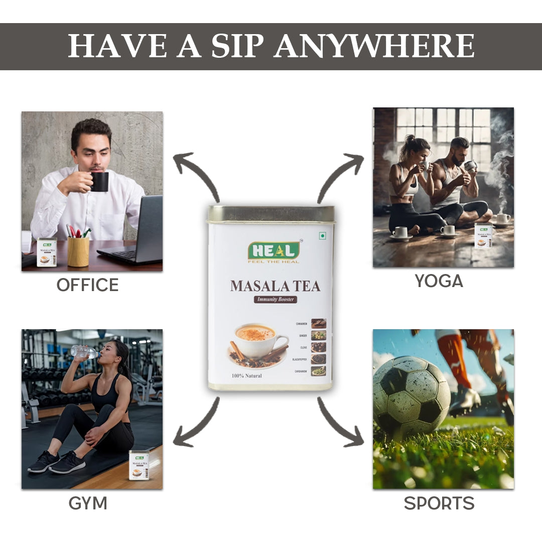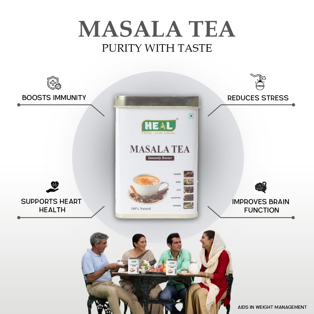 Experience the power of Immunity Boost Masala Chai, a premium blend of herbal immunity-boosting ingredients and antioxidant-rich spices. Infused with the goodness of turmeric, ginger, tulsi, black pepper, and cardamom, this aromatic chai is carefully crafted to support your immune system, promote respiratory health, and aid digestion. The perfect combination of traditional Indian spices and high-quality tea leaves delivers a warm, soothing flavor while naturally enhancing your body's defenses against seasonal infections.